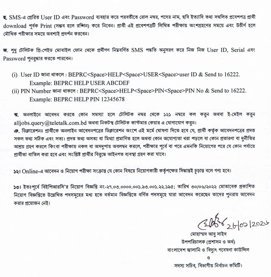 | আবেদনের ওয়েবসাইট | http://beprc.teletalk.com.bd |